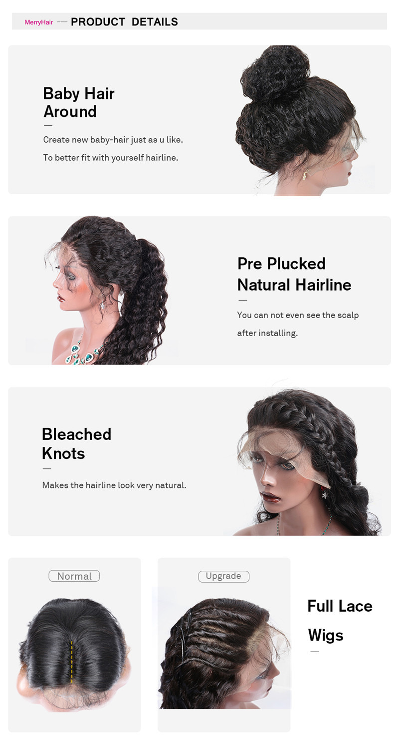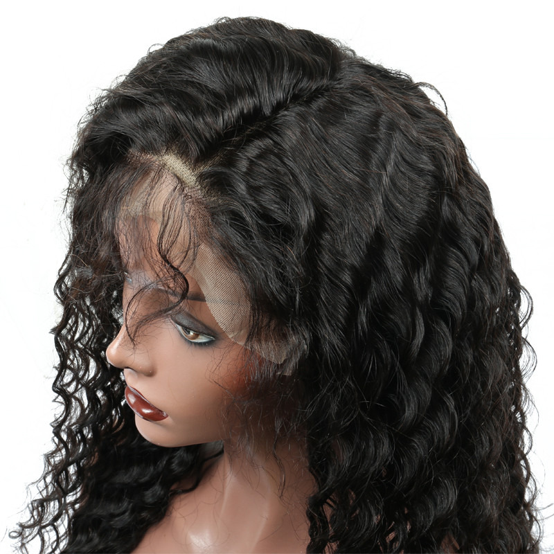 Hair Texture: Deep Wave/Curly Hair Color: #1B (Natural Black) Material: Human Hair Cap Size: Average Size Color of Lace: Light Brown Lace Available Length: 10~30 inch Lace Wig Type: Full Lace Wig Material Grade: 9A Grade High Quality Made Method: Hand Tied Items per Package: 1 Piece Only Weight: 120~285g(+/-5g)/piece Hair Density: 130% Kind Of Lace: Swiss Lace